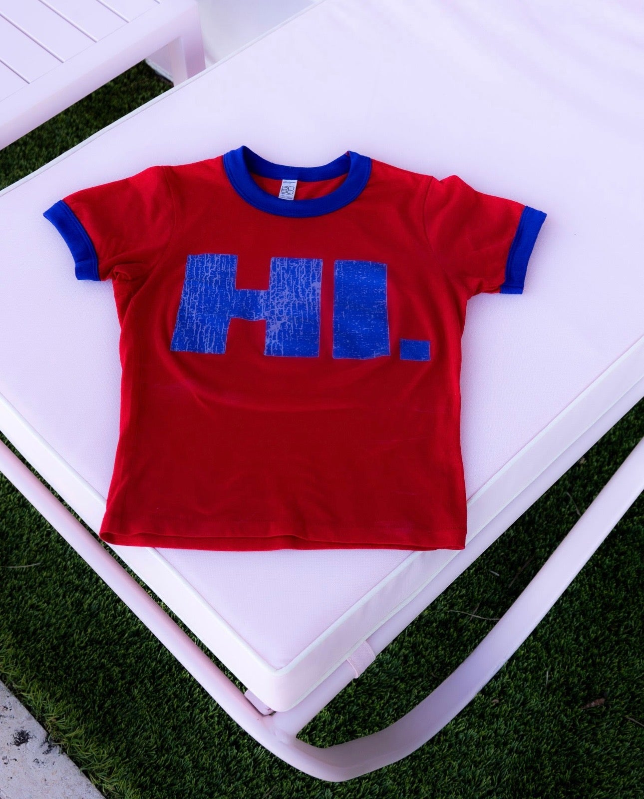 "HI!" Ringer Tee (Blue/Red)